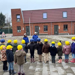 In de afgelopen weken ontvingen we bij meerdere van onze bouwprojecten bezoek. Bij Oosterhof Zuid in Vaassen kregen de kinderen van groep 1 en 2 van Bassischool De Kleine Wereld een rondleiding. Ze leerden onder andere over een wadi, zwaaiden vol enthousiasme naar de kraanmachinist en mochten zelf een stukje metselen.