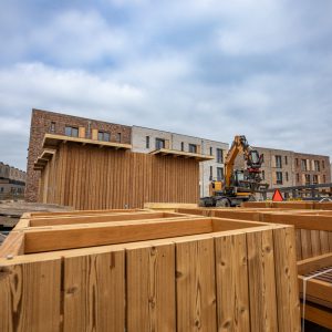 De unieke rug-aan-rugwoningen, een heel mooi startersconcept, zijn als eerste aan de beurt. Hier worden de houten bergingen geplaatst en zijn we binnen bezig met de afwerking van de woningen. Bij het laatste blok woningen gaan binnenkort de steigers weg en worden ook daar alle puntjes op de i gezet voor oplevering aan de kopers.