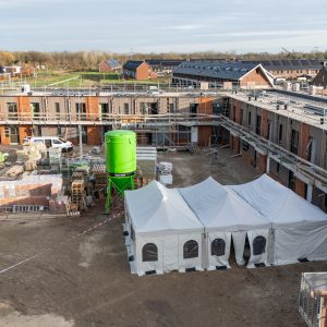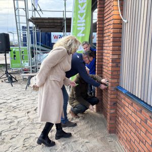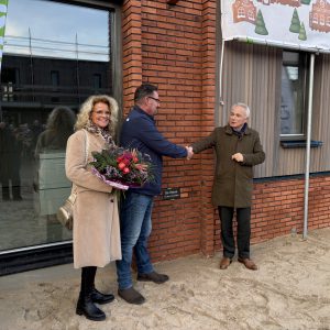 Gistermiddag was een feestelijke middag bij De Hoeve in Apeldoorn. Er vond namelijk een feestelijke handeling plaats. Onder begeleiding van uitvoerder Maarten werd er samen met de toekomstige bewoners van bouwnummer 1 en wethouder Messerschmidt van de gemeente Apeldoorn een plaquette in de gevel gemetseld.