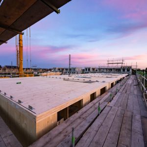 Bij het Roosterkwartier combineren we CLT (Cross Laminated Timber) met ClickBrick, een droog stapelbare gevelsteen die je later weer uit elkaar kunt halen. Daarmee doen we (opnieuw) ervaring op met twee technieken die passen bij circulair bouwen en bij de vraag hoe we materialen in de toekomst slimmer kunnen hergebruiken.