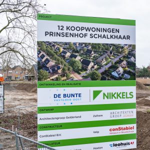 De bouw van het plan “Prinsenhof” in Schalkhaar is officieel van start gegaan! De Bunte Vastgoed en Nikkels Projecten hebben het plan samen ontwikkeld. Het betreft 12 koopwoningen bestaande uit vier twee-onder-een-kapwoningen, vier levensloopbestendige twee-onder-een-kapwoningen en vier levensloopbestendige rijwoningen. De levensloopbestendige woningen zijn voorzien van een volledig woonprogramma op de begane grond, waardoor comfortabel wonen op één verdieping mogelijk is.