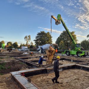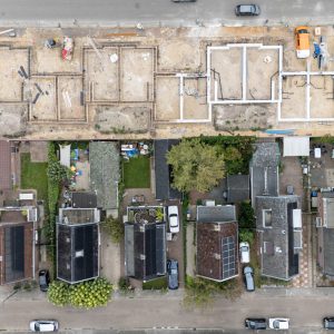 In april zijn we gestart met de sloop van de oude bebouwing en is het terrein bouwrijp gemaakt. De funderingspalen zitten in de grond en bij de eerste vier woningen is afgelopen week de fundering gestort. Alle woningen zijn verkocht en wij kijken ernaar uit om voor deze kopers een prachtige nieuwe woning te realiseren.