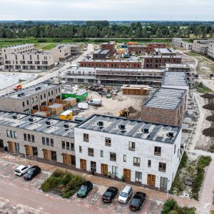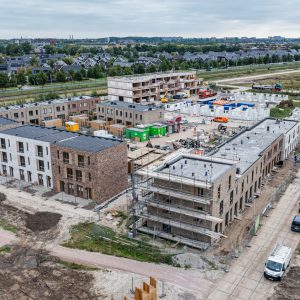 De unieke rug-aan-rugwoningen, een heel mooi startersconcept, zijn als eerste aan de beurt. Hier worden de houten bergingen geplaatst en zijn we binnen bezig met de afwerking van de woningen. Bij het laatste blok woningen gaan binnenkort de steigers weg en worden ook daar alle puntjes op de i gezet voor oplevering aan de kopers.