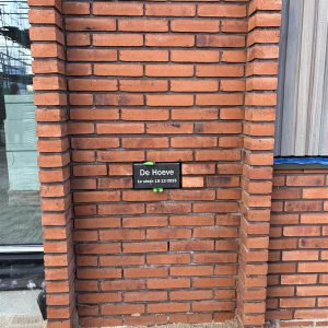 Gistermiddag was een feestelijke middag bij De Hoeve in Apeldoorn. Er vond namelijk een feestelijke handeling plaats. Onder begeleiding van uitvoerder Maarten werd er samen met de toekomstige bewoners van bouwnummer 1 en wethouder Messerschmidt van de gemeente Apeldoorn een plaquette in de gevel gemetseld.