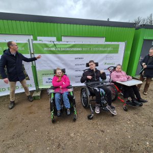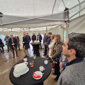Een feestelijk moment: Op de locatie Erve Steenbruggen in Olst is op vrijdag 28 november namelijk het officiële startsein gegeven voor de start van dit unieke bouwproject. Met de onthulling van het bouwdoek door André Leferink, Emiel Nikkels en drie toekomstige bewoners gaan de bouwactiviteiten nu dan ook écht beginnen.
