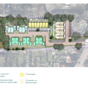 Op de locatie komen in totaal 29 woningen, verdeeld over verschillende woningtypen: 6 twee-onder-een-kapwoningen, 7 rijwoningen, 4 levensloopbestendige twee-onder-een-kapwoningen en 12 beneden- en bovenwoningen.